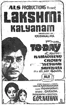 Lakshmi Kalyanam (transl.Lakshmi's Marriage) is a 1968 Indian Tamil-language film, directed by G. Or. Nathan and produced by A. L. Srinivasan. The film stars Sivaji Ganesan, Sowcar Janaki, Vennira Aadai Nirmala, K. Balaji and M. N. Nambiar. It was released on 15 November 1968.[1] The film was remade in Telugu as Pelli Koothuru (1970).