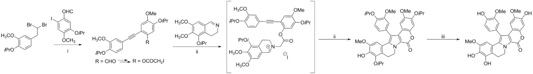 The lamellarins have been synthesized by a number of groups, including Isibashi, Steglich, Ruchirawat, Banwell, Alvarez, Gupton, Boger, and Handy.[4]