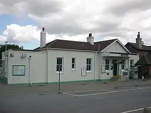 Lancing Station was opened 24 November 1845 by the Brighton and Chichester Railway when that railway opened between Shoreham and Worthing.[1] The railway was originally constructed to double track standards, but only one line was initially provided,[2] with the second line being brought into use between Shoreham and the Arun bridge during 1847.[3]