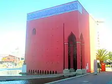 The Arab memorial (Portuguese: Memorial Árabe) is a specialised library dedicated to Middle-Eastern culture. The building is cube-shaped, designed along Moorish lines with elements such as a vault, columns, arches and stained-glass windows. It is built over a water mirror and houses a sculpture of the writer, Gibran Khalil Gibran.