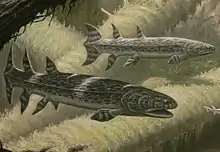 The biggest carnivorous synapsid of Early Permian was Dimetrodon, which could reach 4.6 m (15 ft) and 250 kg (550 lb).[8] The largest members of the genus Dimetrodon were also the world's first fully terrestrial apex predators.[9]