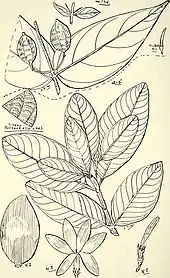 | Illustration (lower half) of a species of Larsenaikia, L. ochreata (drawn as Gardenia ochreata, number 215). | |
