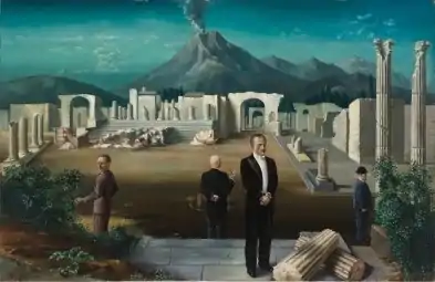 Late Visitors to Pompeii (Dutch: Late bezoekers van Pompeï) is a 1931 painting by Carel Willink. It depicts four modern men at the forum of Pompeii with Mount Vesuvius in the background. The painting belongs to the Museum Boijmans Van Beuningen since 1933. It has been interpreted in correlation with the cultural philosophy of Oswald Spengler, who is one of the men in the painting, and themes of civilisational crisis in the fiction of Ferdinand Bordewijk.