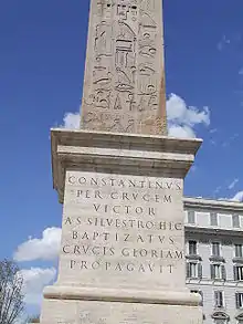 ![]() Obelisk today across from the Archbasilica of Saint John Lateran | |