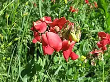 Lathyrus rotundifolius, the Persian everlasting pea, is a species of flowering plant in the pea family Fabaceae, native to Turkey. Growing to 1.5 m (4.9 ft) tall, this herbaceous perennial climber has twining, clinging tendrils and brick red flowers in summer. Unlike its relative, the sweet pea (Lathyrus odoratus), the flowers are unscented. It is hardy to −20 °C (−4 °F), but requires a position in full sun.