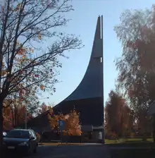 Lauritsala Church (Finnish: Lauritsalan kirkko) is an Evangelical Lutheran church in the Lauritsala district of Lappeenranta, Finland. The church was opened in December 1969. The modernist concrete design was created by architect Toivo Korhonen and architect student Jaakko Laapotti. The basis of the design is an equilateral triangle symbolising the Holy Trinity.[1][2]
