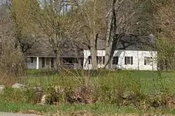 Land that now makes up the farm was first occupied about 1783, when a log house was built by Joseph Parker. After passing through several owners, it was purchased by Silas Wheeler in 1806. He is credited with building the oldest portion of the farmhouse, on the site of the original log house. Lawrence Road, now fractured by unmaintained stream crossings, ran from the house to a mill Wheeler also owned. The Wheeler property was purchased in 1845 by George Lawrence. Lawrence expanded the landholdings of the farm, and also expanded the house, adding an ell to make room for his family, as well as his widowed mother and spinster sister. Lawrence was a successful farmer, and one of Troy's wealthiest residents at the time of his death. His descendants have continued to own the land, leasing the fields to local farmers.[2]