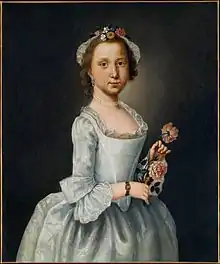 Kilburn received a license to marry on June 24, 1761; his wife's name was Judith Eyraud[4] or Ayraud.[3] He was one of at least ten painters working in New York during the 1760s, and by 1766 found himself competing with various others for custom. Abraham Delanoy, newly returned from studying in London with Benjamin West, was one; John Mare was another, as were John Durand and Cosmo Alexander. Earlier patrons began to abandon him at this point,[5] and it appears from newspaper advertisements that he turned exclusively to mercantile pursuits during the last years of his life.[4] He was dead by September 21, 1775, when an advertisement in Rivington's N. Y. Gazetteer invited patrons to settle their accounts with his widow and executrix.[4] Kilburn's handwritten memoir is preserved at the Moravian Archives, Bethlehem, appearing in the diary of First Moravian Church of New York, where he was a regular church member. After Laurence's death, Judith moved to Bethlehem, Pennsylvania, and her handwritten memoir is likewise preserved among the records of the Moravian Church in Bethlehem.