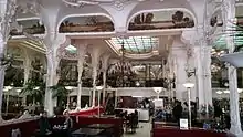 Le Grand Café is a famous café and brasserie in Moulins in the French department of Allier, located at 49, place d'Allier, in the town centre. It was created in 1898 and its inner architecture is representative of the Neo-rococo late 19th century style and features large wall mirrors, stucco, wrought iron, murals and ceiling paintings, as well as a large glass roof. Le Grand Café was listed as an official historical monument in February 1978.[1]