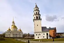 The Leaning Tower of Nevyansk (Russian: Невья́нская ба́шня) is a tower in the town of Nevyansk in Sverdlovsk Oblast, Russia, built in the 18th century. Its construction was funded by the blacksmith and industrialist Nikita Demidov and later his son Akinfiy Demidov, a famous Russian manufacturer and an associate of Peter the Great.