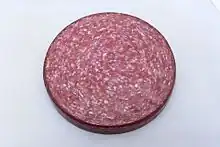 Lebanon bologna is a type of cured, smoked, and fermented semidry beef sausage; it is not, in spite of its name, a pork-based bologna. Similar in appearance and texture to salami, it is somewhat darker in color, and is typically served as a cold cut or appetizer.