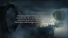 On top of Mount Grimrock, an airship carries a group of prisoners escorted by armed knights. The prisoners have been sentenced to be thrown into the pit of Mount Grimrock for crimes against the King, after which point they will be absolved. However, no prisoner pardoned in this manner has ever returned.