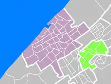Leidschenveen-Ypenburg (Dutch pronunciation: [ˈlɛitsə(ɱ)ˌveːn ˈipə(m)ˌbʏr(ə)x]) is a Vinex-location and district of The Hague, located in the southeast. It is geographically connected to the main body of the city by only a narrow corridor. It consists of four quarters: Hoornwijk and Ypenburg on the southwest of the A12 motorway and parallel railway to Utrecht, and Forepark and Leidschenveen on the northeast.