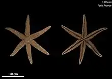 Leptasterias polaris is a small, slow growing, compact starfish with six arms. The aboral (upper) surface has a covering of blunt spiny plates and is usually some shade of brown or grey.[1][2]