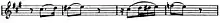 The same motive accompanies the development section. It begins with the main theme in A major, whose second section is omitted, and the first one is reworked again and again. After a climax the motto theme enters in C major, played by horns and violins. It is rounded by the cornets with the third section of the main theme. The tempo becomes slower (Un poco più lento) to let the violins sing the third theme, now in E♭ major. However, it is constantly disturbed by the scattered elements of the main theme in other voices.