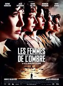 Female Agents (French: Les Femmes de l'ombre) is a 2008 French historical drama film directed by Jean-Paul Salomé and starring Sophie Marceau, Julie Depardieu, Marie Gillain, Déborah François, and Moritz Bleibtreu.[3] Written by Salomé and Laurent Vachaud, the film is about female resistance fighters in the Second World War. Jean-Paul Salomé, the director, drew inspiration from an obituary in The Times newspaper[4] of Lise de Baissac (Lise Villameur), from Mauritius (then a British colony), one of the heroines of the SOE, named "Louise Desfontaines" in the film and played by Sophie Marceau. The film was partly funded by BBC Films.