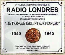 Les Français parlent aux Français was a daily radio broadcast in French transmitted on the BBC (Radio Londres). It was broadcast from the 14 July 1940:[1][2] under the title Ici la France[3][1][2] then, from 6 September 1940[3][1][2] to 31 August 1944,[1] under its better known name.