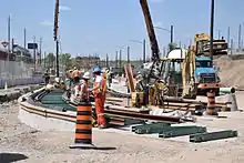 In May 2015, 60 metres (200 ft) of track was laid 9 centimetres (3.5 in) too high by the contractor and had to be rebuilt, resulting in delays to the track project time line to mid-July 2015.[31]