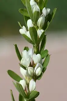 Lespedeza cuneata is a species of flowering plant in the legume family known by the common names Chinese bushclover and sericea lespedeza, or just sericea.[3] It is native to Asia and eastern Australia[4] and it is present elsewhere as an introduced species and sometimes an invasive plant.[5]