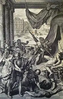 In the Book of Genesis, Levi and his brother, Simeon, exterminate the city of Shechem in revenge for the rape of Dinah, seizing the wealth of the city and killing the men.[6] The brothers had earlier misled the inhabitants by consenting to Dinah's rapist marrying her in exchange for the men of the city to be circumcised, and when Jacob hears about their destruction of Shechem, he castigates them for it.[7] In the Blessing of Jacob, Jacob is described as imposing a curse on the Levites, by which they would be scattered, in punishment for Levi's actions in Shechem.[8]