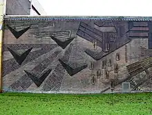 "Hand sows grain in a field with birds", part of an allegory on baking bread, 1962โ1963, Paul Krugerkade, Haarlem