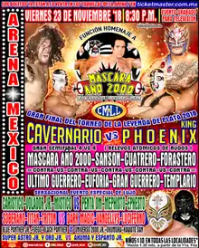 - ↑ "Noche redonda para Máscara Año 2000 en su aniversario 40 en el CMLL" (in Spanish). November 24, 2018. Retrieved November 18, 2019.