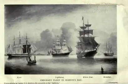 Emigrant fleet (Kent, Lightning, White Star, Malabar) in Hobson's bay by D.O. Robertson