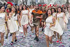 The Limassol Carnival Festival is an annual European carnival event held in Limassol, Cyprus.The event is held 12 days before the start of Lent, on the Sunday before Ash Monday, 50 days before Orthodox Easter.[1][2] The festival is a colourful 10-day event of people eating, singing, satire, games, wearing costumes, and attending parties. The festival culminates with a large parade, which includes an array of floats traversing the city.[3][4][5]