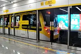 Line 3 of the Hangzhou Metro (simplified Chinese: 杭州地铁三号线; traditional Chinese: 杭州地鐵三號線; pinyin: Hángzhōu Dìtiě Sānhào Xiàn) is a metro line in Hangzhou.[3][4] The line is 57.5 km long.[2] It will run in a southwest-northeast direction between Wushanqiancun station in Yuhang District and Xingqiao station[1] in Linping District in the east, passing through downtown Hangzhou and providing transfers with multiple other lines in the system. The line uses 6-car Type AH rolling stock, which is designed for exclusive use in Hangzhou.[5]