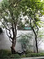 A complex and unique structure composed of a courtyard, open 3 bay hall, and covered corridor which functions as a single space. The courtyard is planted with two trees symbolizing jade (Magnolia soulangia) and gold (Osmanthus fragrans), a sign of prosperity. The entry to this space is marked by a tablet inscribed by Deputy Prime Minister Zhu Boqi which read, "Paradise on Earth".[2] |
