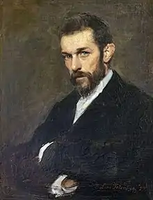 His father, Riccardo (born 1849), was a lawyer, poet, comedic dramatist, and politician,[2] who intended his son to become a lawyer and legislator.[3] Lino's brother, Luigi Selvatico (1873-1938), was also a painter.[4] Luigi was nicknamed il gobbo Selvatico due to his physical ailment.[5] Lino was a pupil of Cesare Laurenti, and was also influenced by his friend Ettore Tito. He also was known for art criticism. He painted mainly landscapes in oil and acquaforte. He exhibited two portraits at the third Venice Biennale in 1899. In 1926, the Biennale had a posthumous exhibit of 45 of his works, and in 1935, sixteen of his works. His works are displayed in the Moderna Art Galleries of Milan, Rome, Trieste, Udine, and Venice.[6] He completed portraits of Countess Annina Morosini (1908, Venice, Galleria d'arte moderna) and the actress Emma Gramatica (1911, Piacenza, Galleria d'arte moderna Ricci-Oddi).[7]