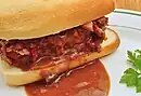Chicago | Seasoned roast beef, dripping with meat juices, on an Italian-style roll, often served with peppers |