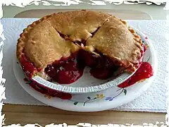 - Cherpumple – a novelty dish where several different flavor pies are baked inside of several different flavors of cake and stacked together. According to the Cherpumple's creator, pop culture humorist Charles Phoenix, "Cherpumple is short for cherry, pumpkin and apple pie. The apple pie is baked in spice cake, the pumpkin in yellow and the cherry in white."[2]
