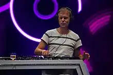 This is a list of notable club DJs, professionals who perform, or are known to perform, at large nightclub venues or other dance events, or who have been pioneers in the development of the role of the club DJ. DJs play a mix of recorded music for an audience at a bar, nightclub, dance club or rave who dance to the music. The music is played through a sound reinforcement system.