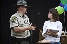 A journalist with the Wytheville Enterprise interviewing a Virginia State Parks ranger in 2012