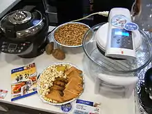 | Roaster oven | An electric table or cabinet top popular in the 1950s. Large enough to bake turkeys, they had removable inserts which held the food and a lid, often with a glass insert. | |