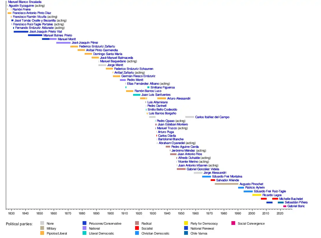 Social Convergence | 2021 | Youngest president. First leftist president since 1970. Supported by the coalition Apruebo Dignidad. | |