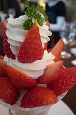 Strawberry sundae | A sundae with strawberries as a primary ingredient | |