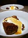 United Kingdom | Like a sticky toffee pudding, but with dates mixed in. |