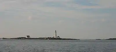 Little Brewster Island is a rocky outer island in the Boston Harbor Islands National Recreation Area. It is best known as the location of Boston Light, one of only five remaining Coast Guard-staffed lighthouses in the United States, and an important navigation aid for traffic to and from the Port of Boston. The island is situated some 9 miles (14 km) offshore of downtown Boston and has a permanent size of 3 acres (12,000 m2), plus an intertidal zone of a further 4 acres (16,000 m2).[1]