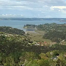 The creek was known by Te Kawerau ā Maki and other Tāmaki Māori as Waikūmete,[2] a name that was later applied to the greater Glen Eden area during the time of European settlement.[3] It was a traditionally strategic location, linking the southern Waitākere Ranges to the Manukau Harbour, and a place at the end of a major north-south walking track which was accessible for travel by canoe.[4] The area was known as a place for canoe construction, with many traditional place names referencing the construction of waka made from tōtara wood.[4] The area was protected with a fortified pā at modern-day Laingholm named Te Tokaroa.[4]
