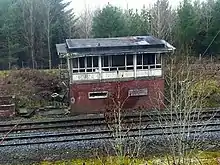 South of Eden Lacy viaduct and north of Little Salkeld station was Long Meg Sidings signal box. A British Railways London Midland Region Type 15 design fitted with a 40 lever London Midland Region Standard frame, it opened on 3 July 1955 replacing Long Meg Sidings Ground Frame which only connected with the Up line. A Midland Railway signal box had been at this location until 13 March 1915. The signal box was officially closed on 11 July 1990 (although it had been permanently "switched out" for several years prior to this) when the absolute block section was extended to between Culgaith and Low House Crossing signal boxes.[5]