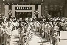 In the 1930s, Liu continued to be a prolific writer and poet, still preferring the classical forms.[3] After the outbreak of the Second Sino-Japanese War in 1937, Liu initially remained in Shanghai, but fled first to Hong Kong, then in 1941 to Guilin, and for the last years of the war to China's wartime capital, Chongqing. He became a member of the China Democratic League, which supported neither the GMD nor the Communists.[1] Liu had met Mao Zedong in Canton in the 1920s and discussed their preference for traditional strict classical forms. When Mao arrived in Chongqing to begin direct negotiations with Chiang Kai-shek, he presented Liu with one of his most well-known poems, "Snow," for Liu to publish. Mao later wrote poems, "For Mr. Liu Yazi," dated 1949 and October 1950.[4]