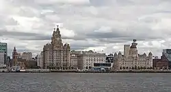 Liverpool Pier Head, with the Royal Liver Building, Cunard Building and Port of Liverpool Building