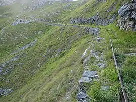 The monorail starts in the quarries of Piastreta (1,580 m), below the Sella mountain, and reaches Renara (310 m),[6] a zone near the village of Gronda, 9 km far from Massa. From an altitude of 995 m begins its descent through a channel called "Fosso del Chiasso", where the slope reaches 90% until the end of the trail at the hill of load. In this section the rail is flanked by a staircase of 2,500 steps that allowed the miners to reach the caves.[1][5]