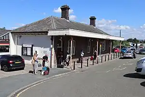 The station has the only staffed ticket office on the line, staffed on a part-time basis. This is sited within the main building on the southbound platform. When the ticket office is closed, tickets may be purchased on the train. There is a waiting room within the buildings on the northbound side and canopies provide a covered waiting area on the southbound side. Digital display screens, customer help points and timetable poster boards are provided on both platforms, which are linked by an accessible ramped footbridge. A pay phone and post box are also provided, but no toilets. The nearest public ones are in Station Crescent.[5]