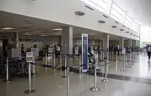 The airport is staffed by the Canada Border Services Agency (CBSA). CBSA officers at this airport can handle aircraft with no more than 180 passengers; however, they can handle up to 450 if the aircraft is unloaded in stages.[2]