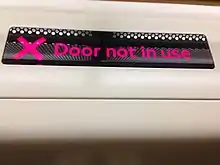 To prevent accidental pressing of emergency alarms, there are flaps over the alarm buttons next to wheelchair spaces.