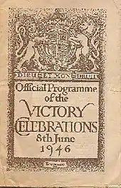 - 1 2 3 4 The Official Programme of the Victory Celebrations on 8 June 1946 in London, England Part 1 Published by His Majesty's Stationery Office, 1946