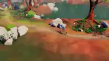 The director thought that being a small team allowed them to iterate quickly on mechanics and ideas.[4] The game also received funding from Medienboard Berlin-Brandenburg. The team partnered with Thunderful to publish and market the game. Retroid Interactive created the console versions of the game.[5] It was announced in a 2016 post on indie game forum TIGSource.[6][7] Megagon planned to get the game on Steam Greenlight, and set a release date of mid-2018.[8] Megagon Industries launched a Kickstarter for the game on October 17, 2017 with a funding goal of €35,000.[9] The game was released on October 22, 2019 for PS4, with Xbox One and Microsoft Windows versions launching the next day.[10][11] The Eldfjall Island DLC was released on October 22, 2020.[12]
